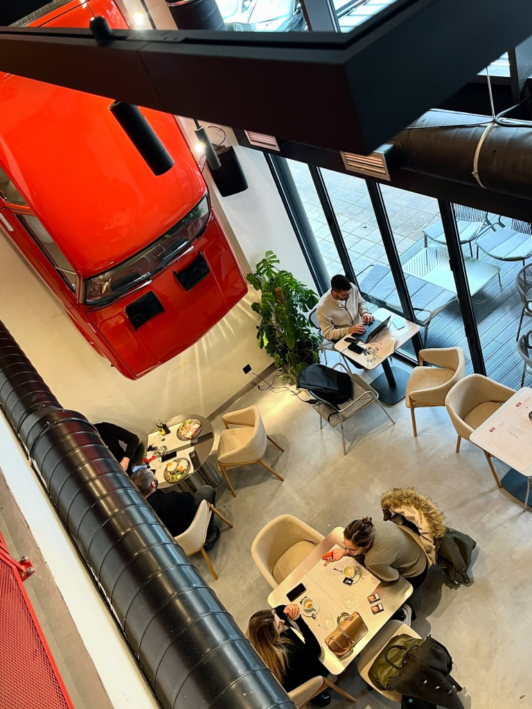 Atraktivena notranja opema vključuje tudi pravi avtomobil, obnovljen in dvignjen na steno.